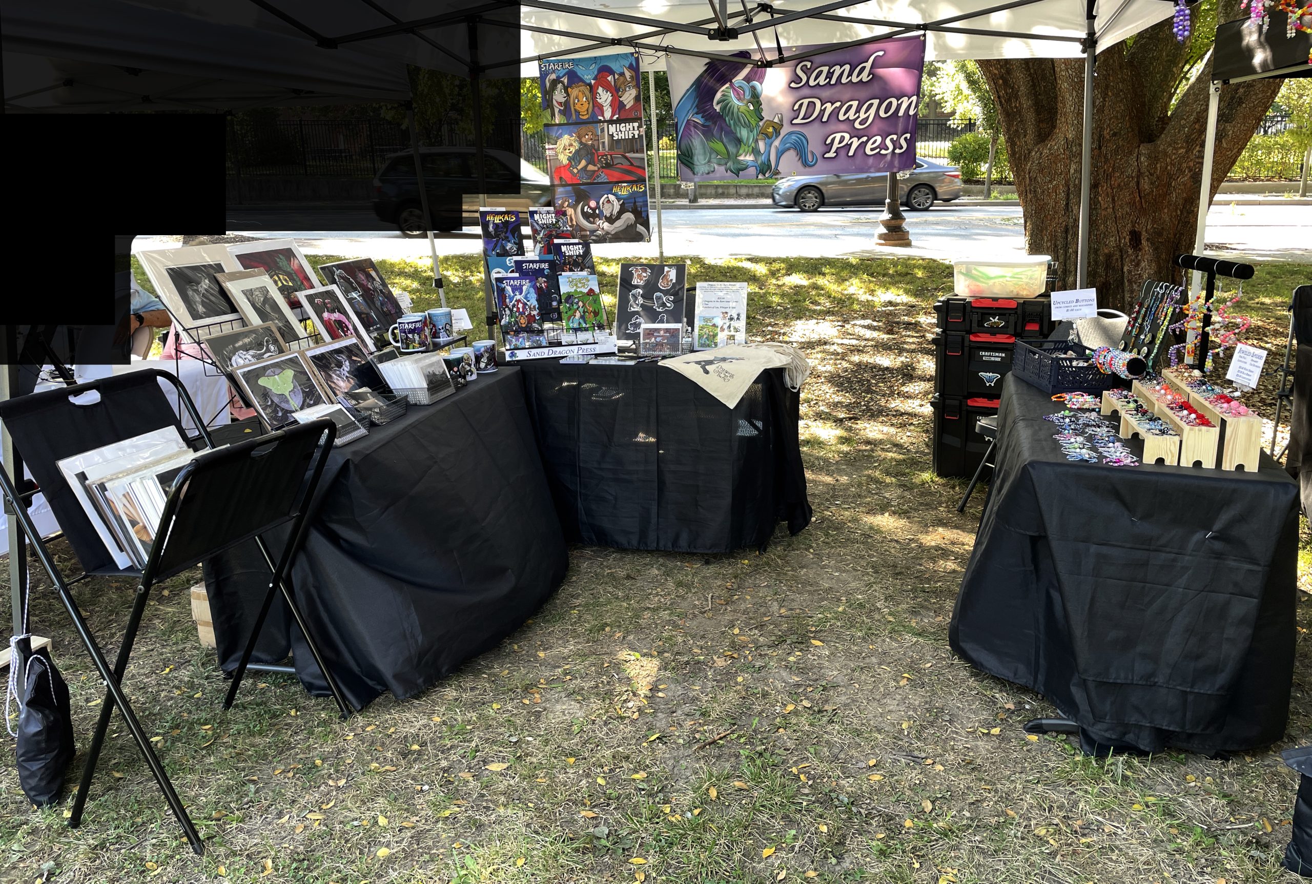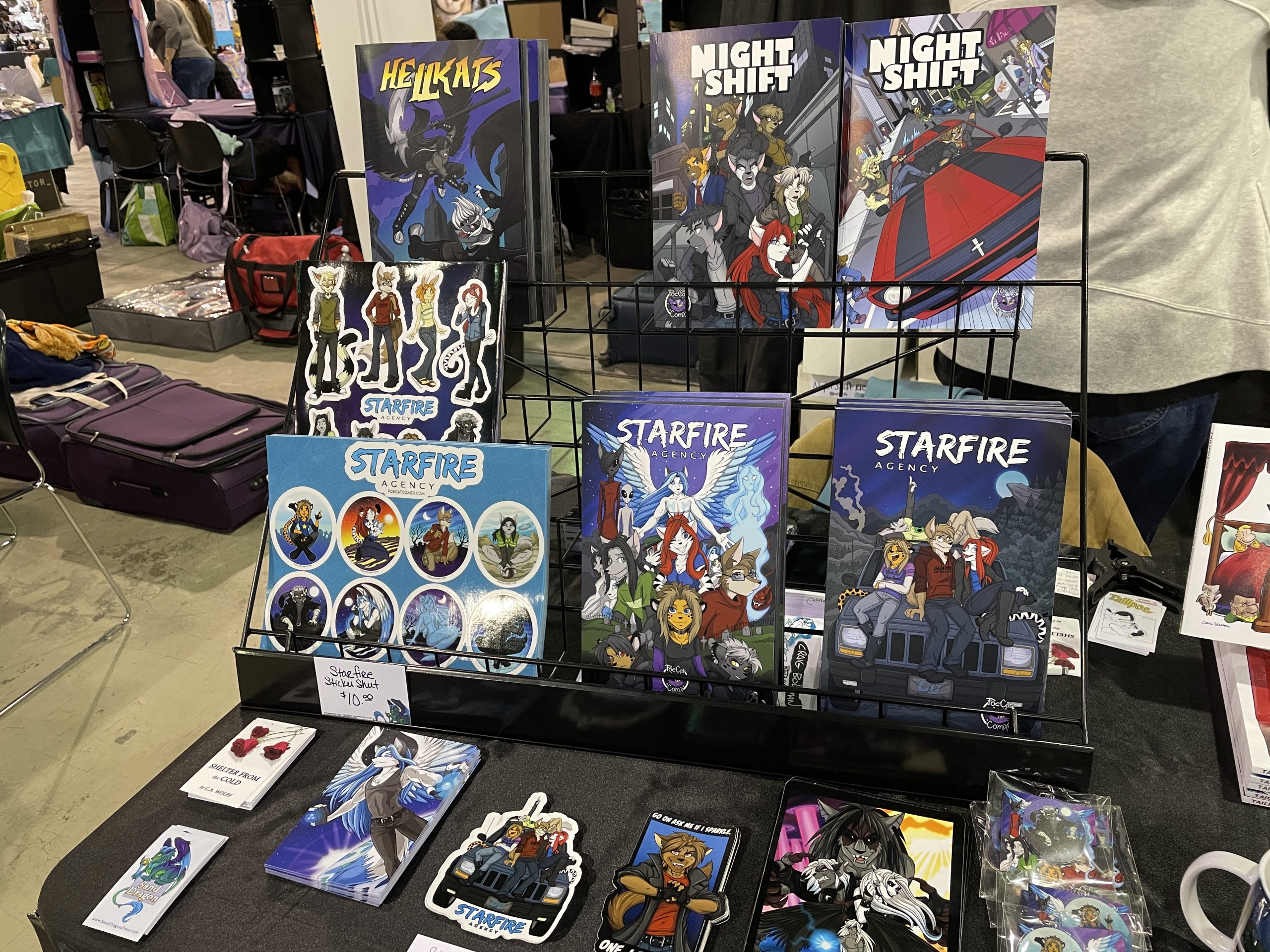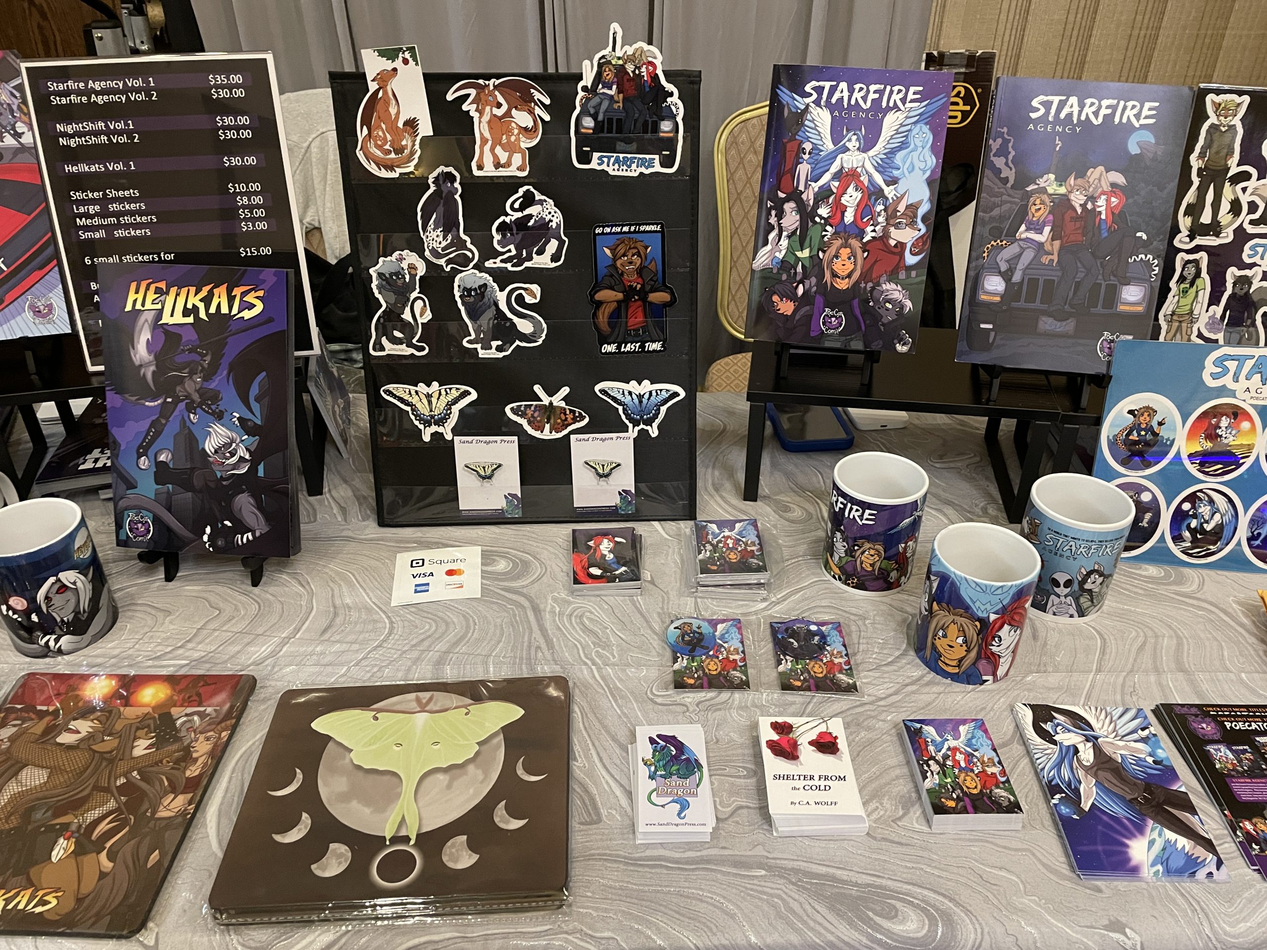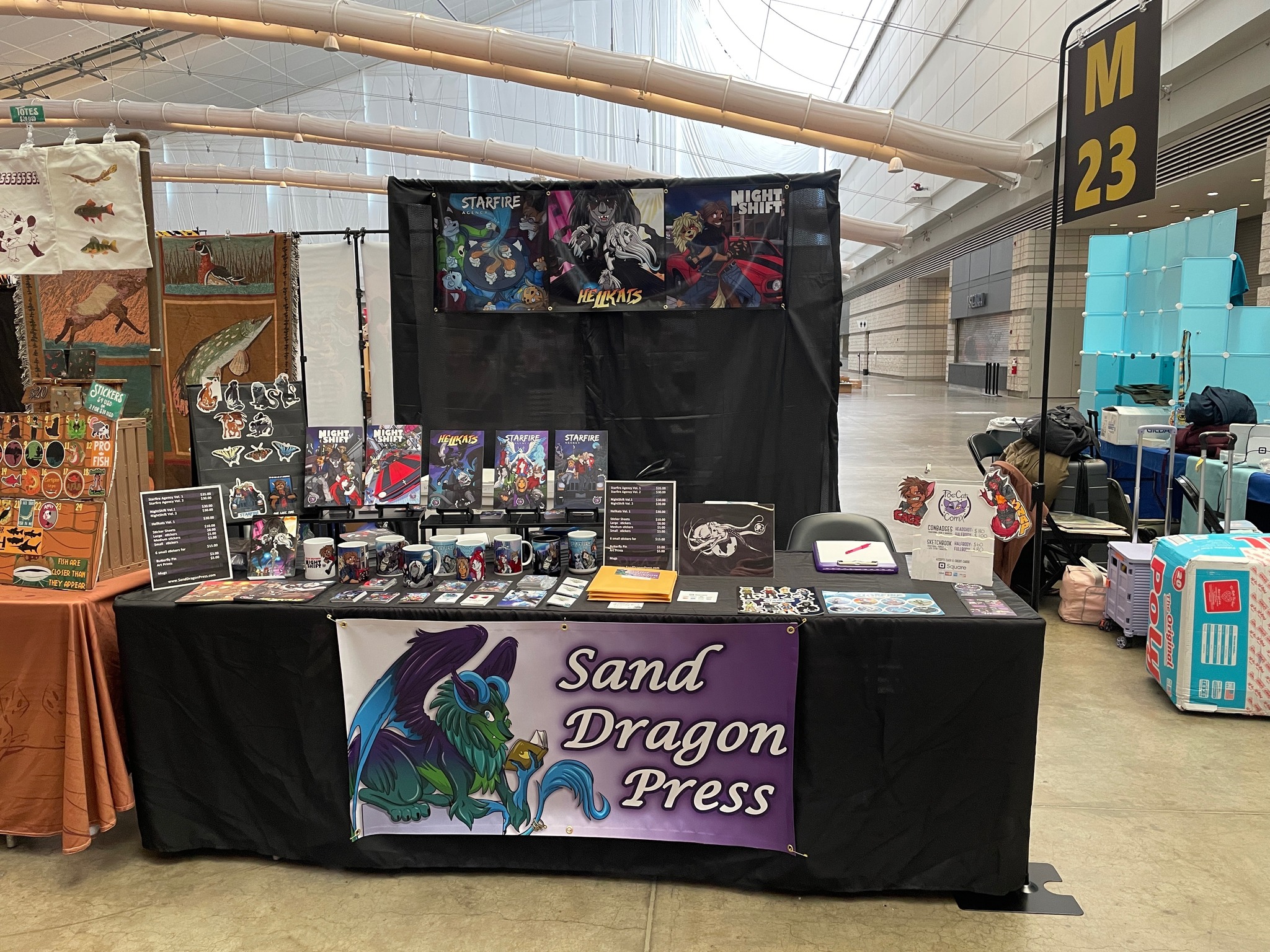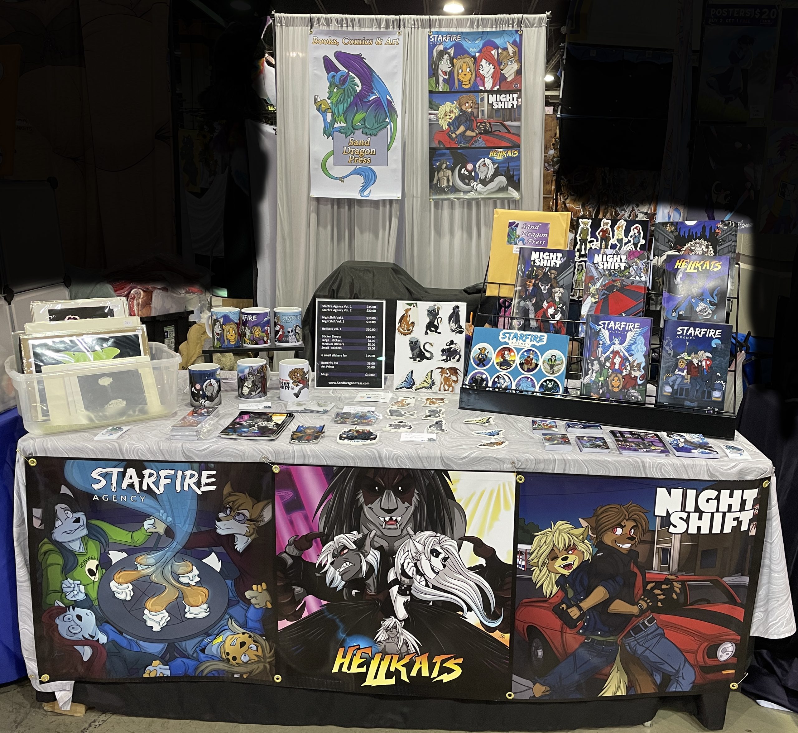 Sand Dragon Press is a small studio by two sisters (Alecia and Sam) that have a little of everything. From books, comics, prints, wildlife illustrations, stickers and 3D sculptures. Titles ranging from All Ages to 16+.